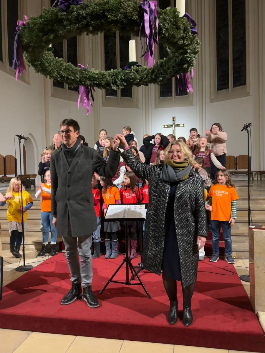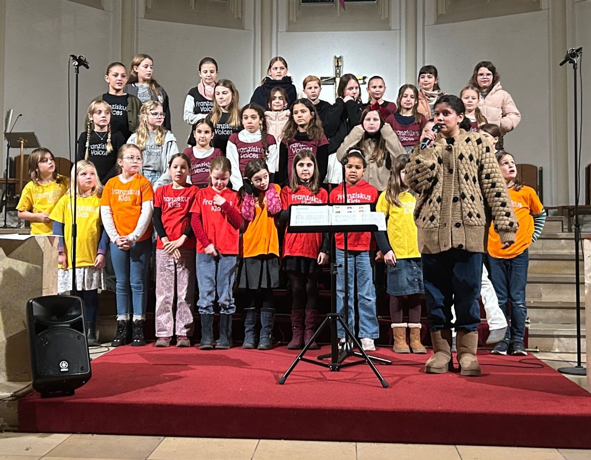 Der jüngste Chor der Schule, die Franziskus Kids, begeisterte das Publikum mit fröhlichen Liedern wie „Der Igel mit der roten Mütze“. Mit viel Freude, Bewegung und Spaß am Singen luden sie zum Mitschunkeln ein und sorgten für viele strahlende Gesichter in der Kirche.